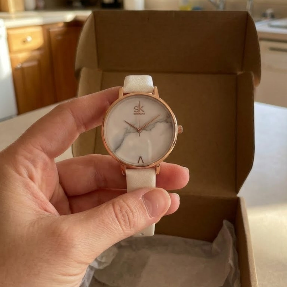 - Luxury-inspired finishes with marble and satin dial options