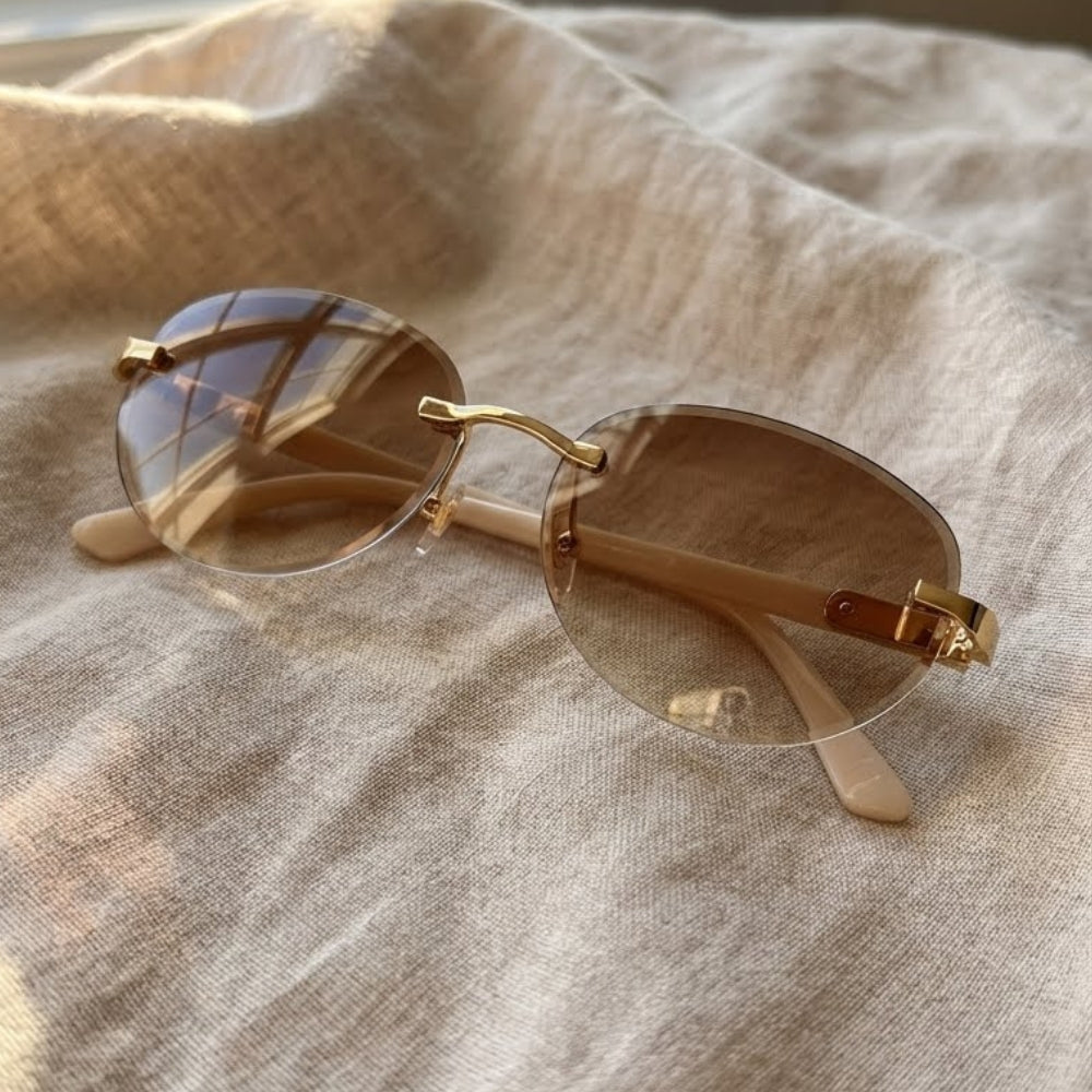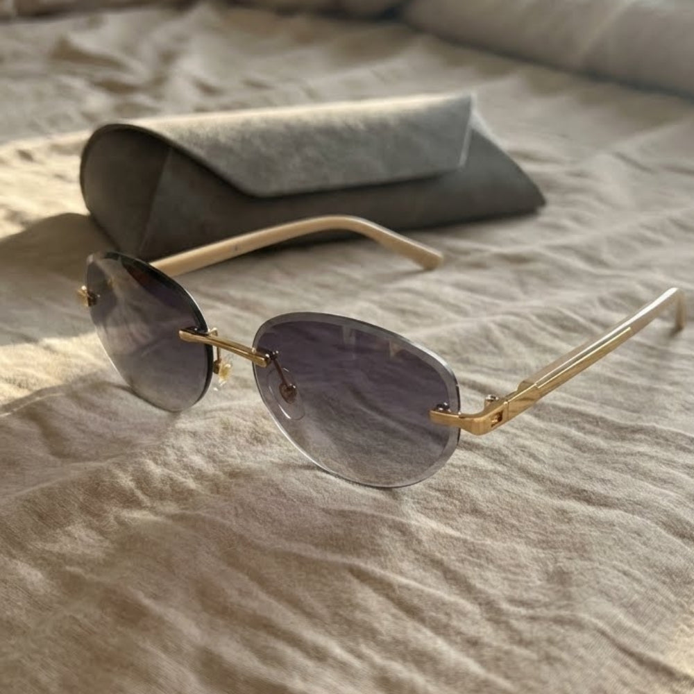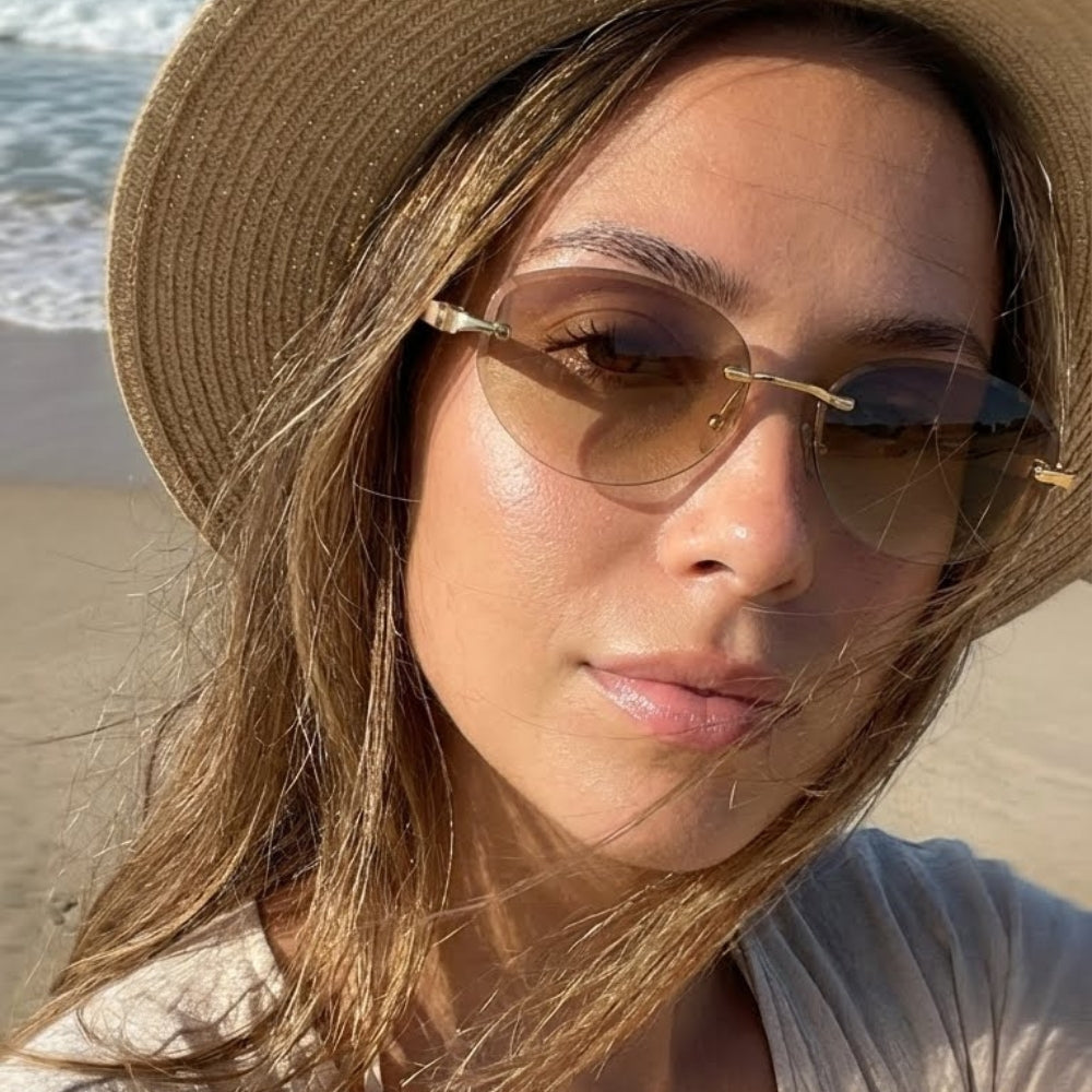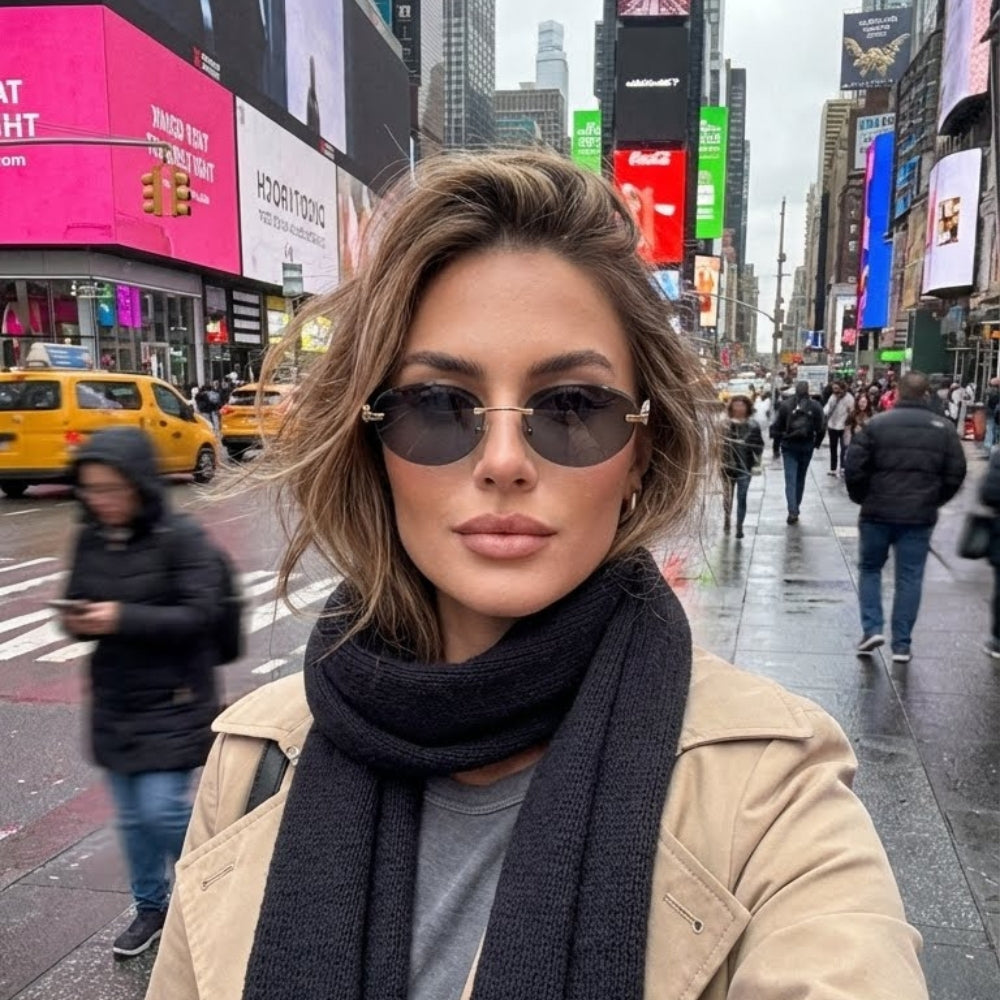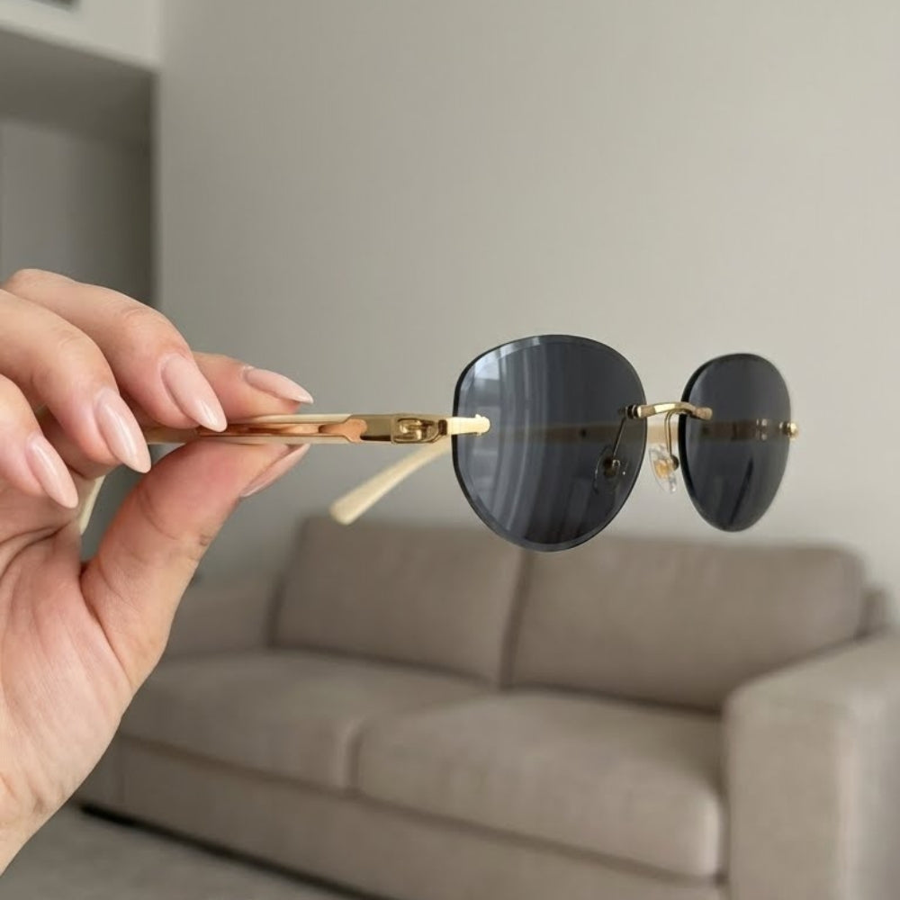 They sit perfectly on the nose without sliding or squeezing, even with all the movement. The dark lenses feel premium and give great UV protection, and the sleek frameless style looks so chic in photos. Perfect for all seasons.”