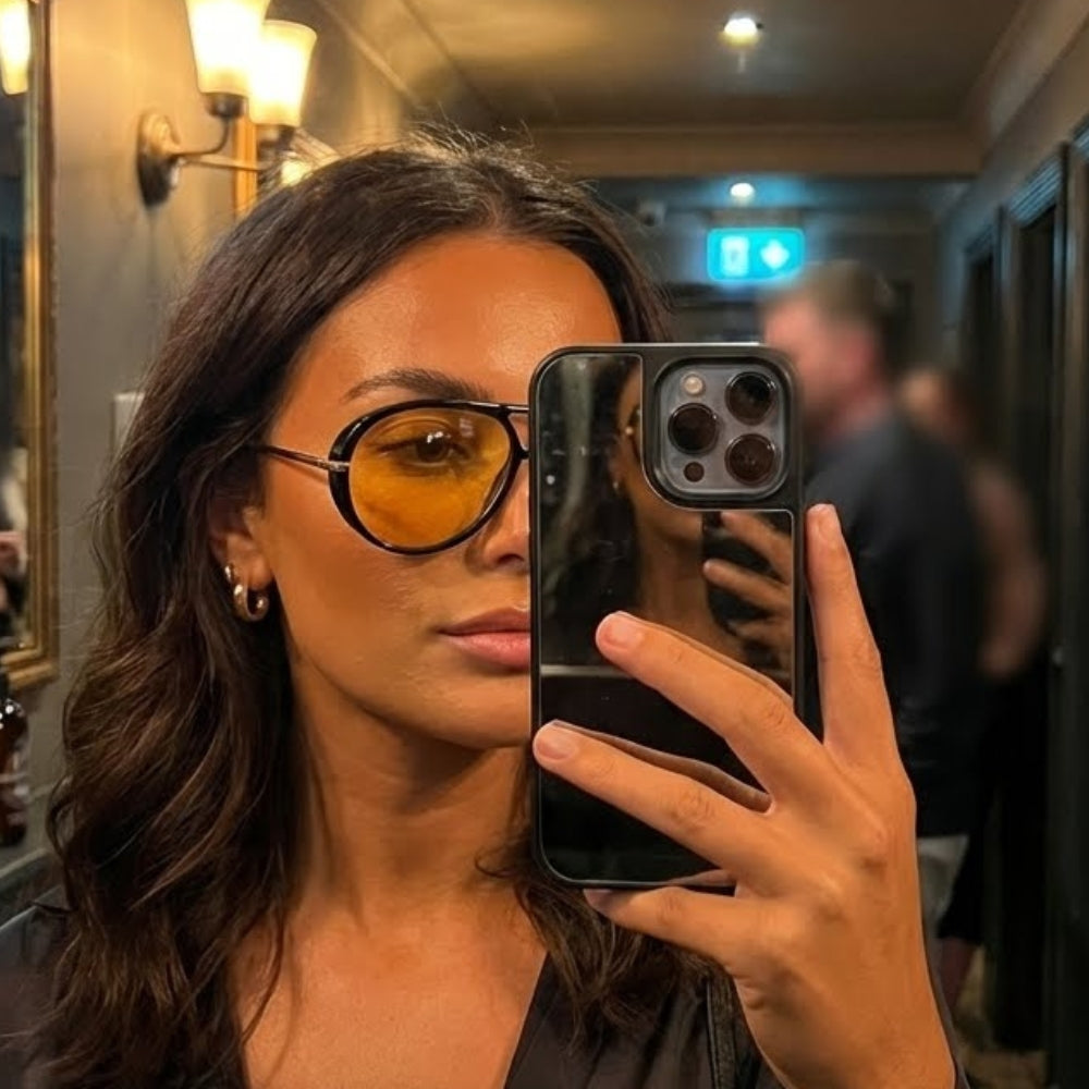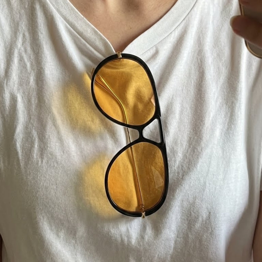 “These yellow lenses add such a cool vibe to any outfit. Super lightweight and surprisingly easy on the eyes indoors too.”