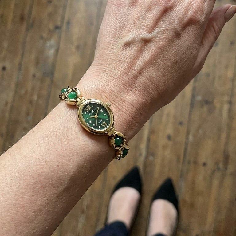 “I wore this out for the first time today and got two compliments already! The green with the gold is such a classy combination. I love that it’s not oversized. This might be my new favorite everyday watch.”